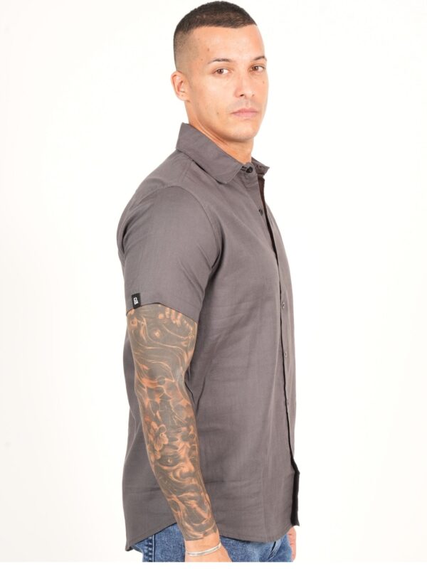 Ribbed velvet revere collar short sleeve shirt