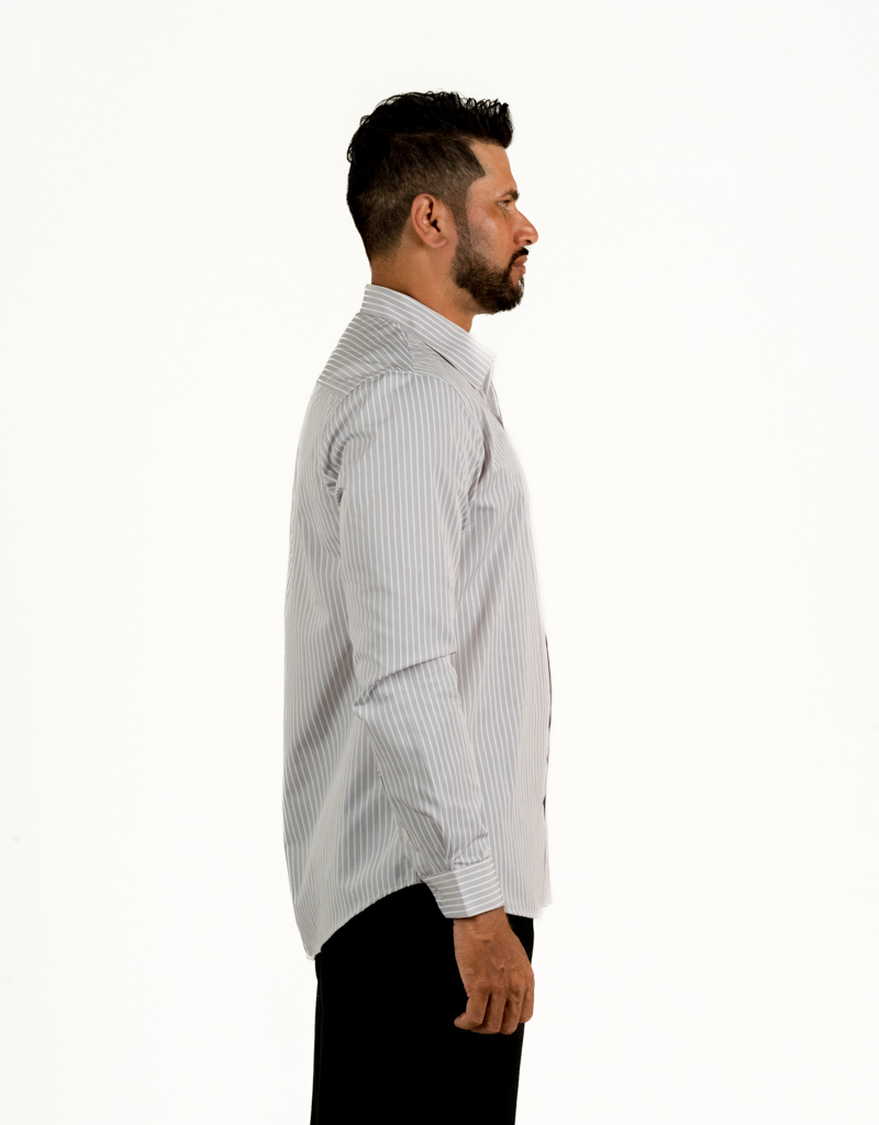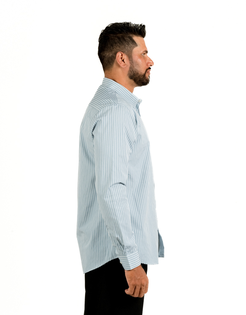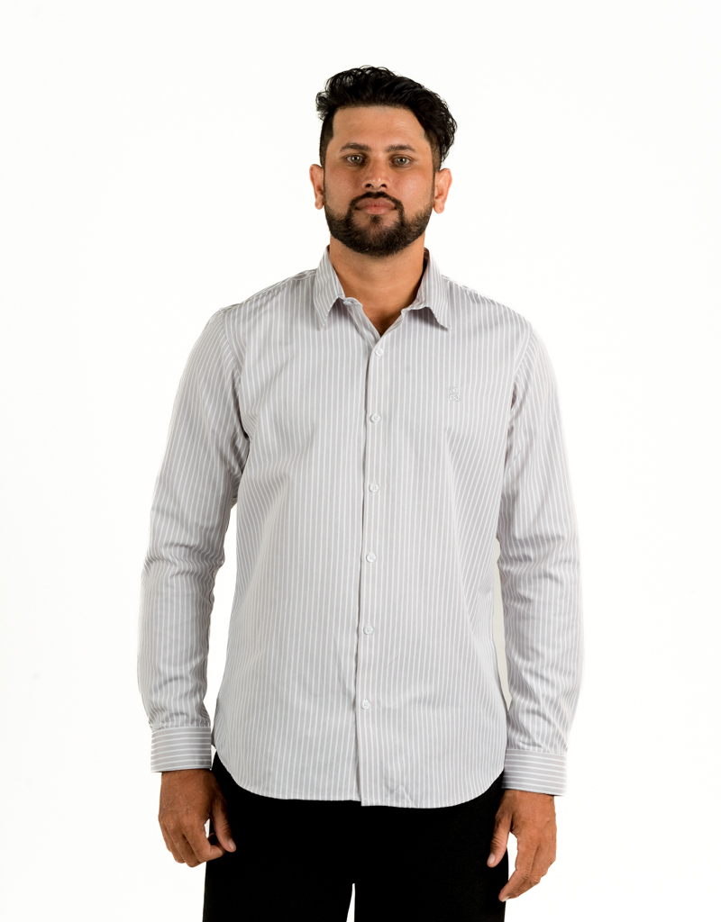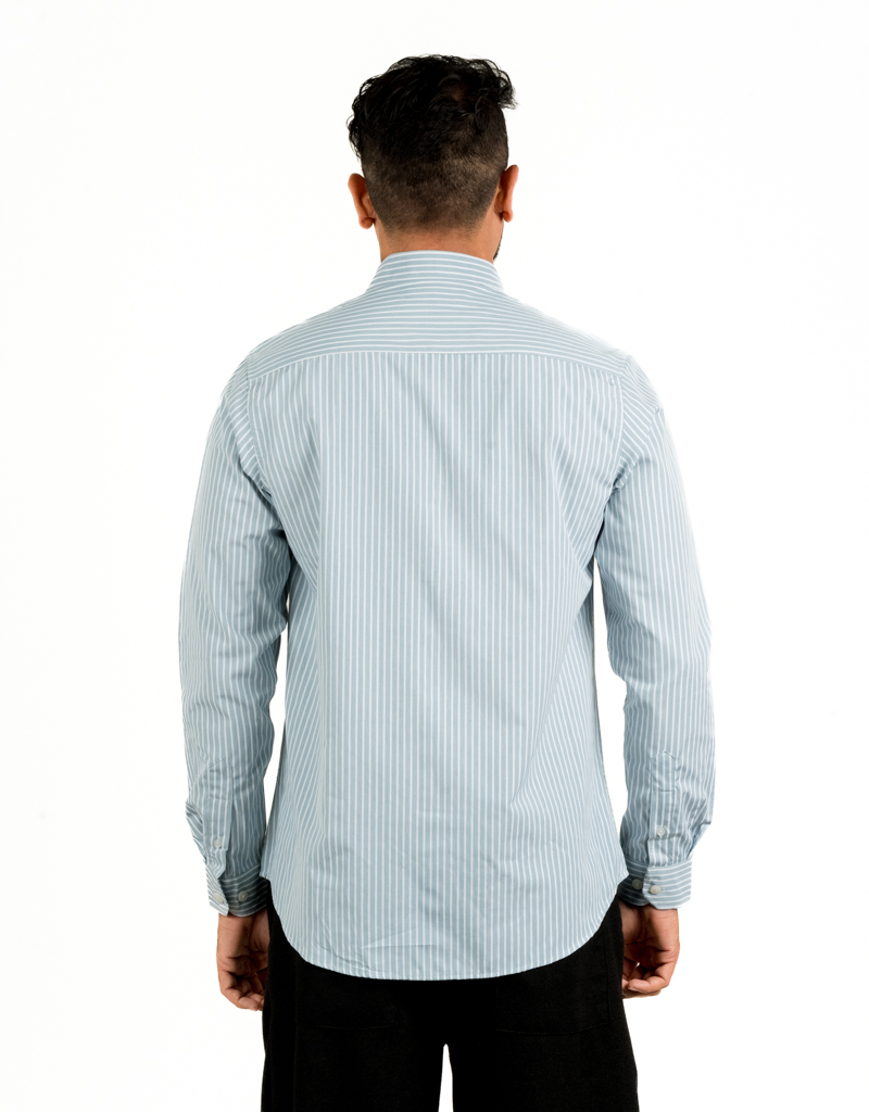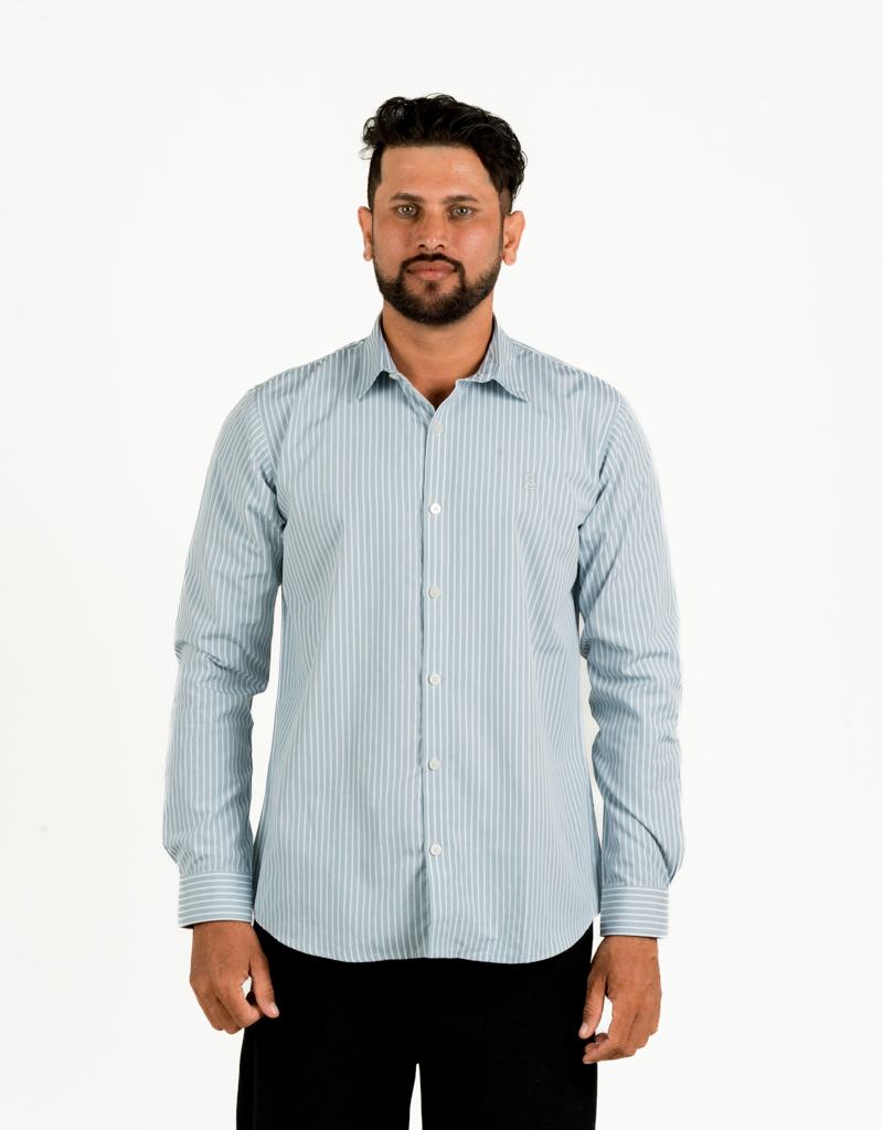 A refined essential crafted from soft, breathable fabric with a clean vertical stripe design. Featuring a classic collar, button-down front, and tailored long sleeves, it delivers effortless style and comfort for both casual and smart occasions.