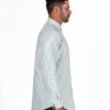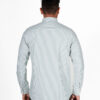 - Long-sleeve silhouette with clean vertical pinstripes